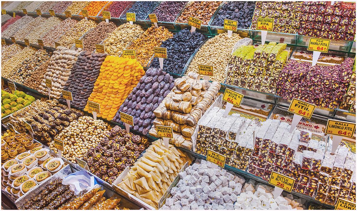 The Egyptian Bazaar is located in the Eminönü district of Fatih. It is also known as the spice market, which is why you can smell the fragrances of the exotic East. Stroll through this market and you'll find a vast selection of brightly-coloured spices, fresh and dried herbs, dried fruit, jams, nuts, coffee and Turkish delicacies. On the west side of the market, you'll find stalls selling products from Anatolia. In particular, you'll find a wide variety of foods such as cheeses.